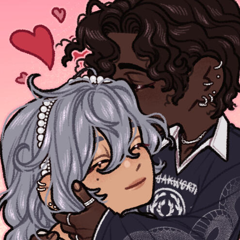 Hi, I didn't know what else to put here. Please look at my current OC x canon hyperfixation. This is my OC Hyunmi with Mr. Crawling from the game Homicipher. Check it out it's very good.✧ They're in love!